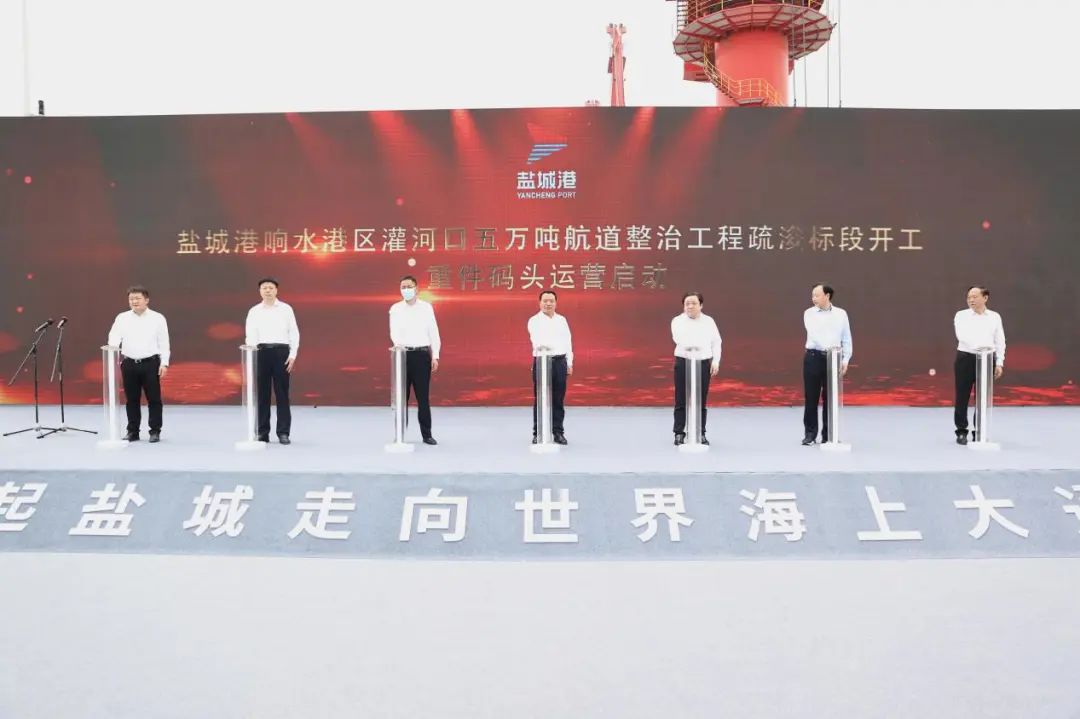 5月19日,鹽城港響水港區灌河口五萬噸航道整治工程疏浚標段開工暨重件碼頭運營啟動儀式成功舉行。鹽城港集團黨委書記、董事長、總經理周正雄,響水縣委書記郭超出席活動并分別致辭。響水縣委副書記徐健,濱海港工業園區副書記、副主任戴道,鹽城港集團黨委委員、紀委書記周旭東,響水縣相關部門負責同志,鹽城港響水港區相關負責同志等參加。