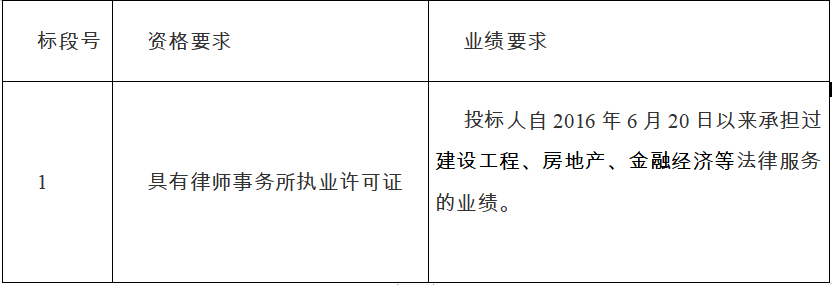 2、資質(zhì)要求:具有律師事務所執(zhí)業(yè)許可證;