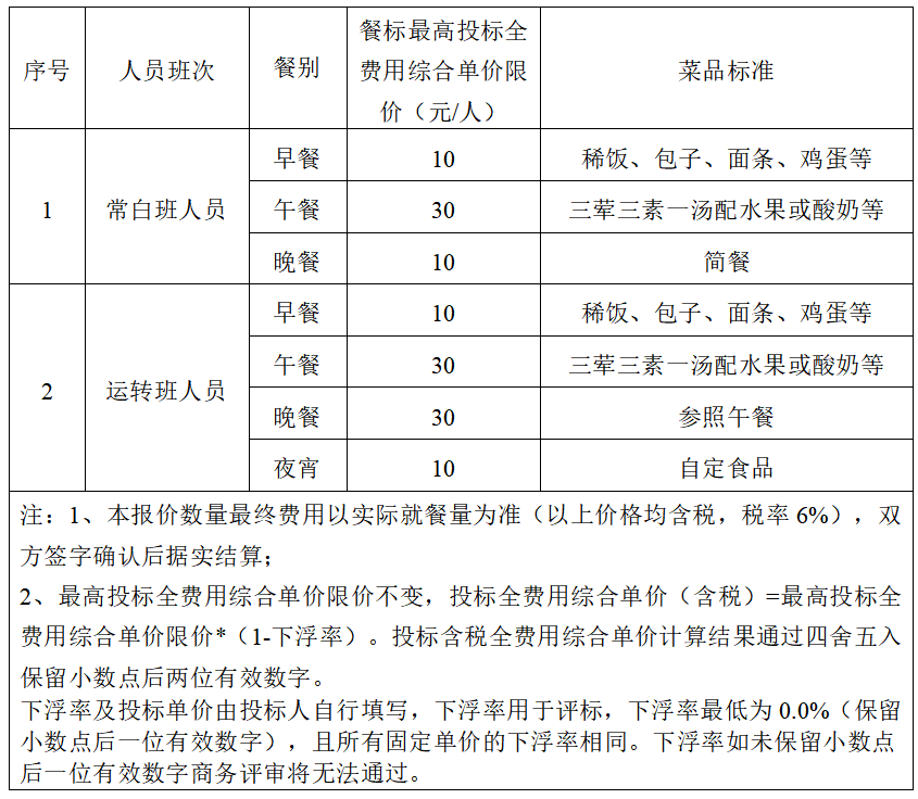 (6)招標范圍:鹽城港響水港區的常駐辦公地點包括響水港區機關、響水港務公司、響城港務公司及聯檢大樓,各需設立獨立食堂。響水港區每日就餐總人數約為180人,其中,機關食堂日均就餐人數約55人,響水港務公司食堂日均就餐人數約65人,聯檢大樓食堂日均就餐人數約35人,響城港務公司食堂日均就餐人數約25人。為了生產運營需要,每個食堂均需獨立運營。