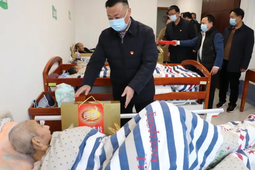 捐贈(zèng)儀式結(jié)束后,周旭東一行還走進(jìn)康養(yǎng)病房,親切地給入住的老人們送上新春的祝福。
