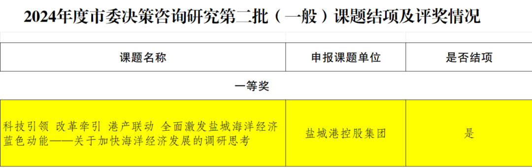 點贊!鹽城港集團調研課題榮獲一等獎