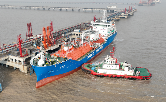 石化碼頭圓滿完成中遠海運特種新船首航作業