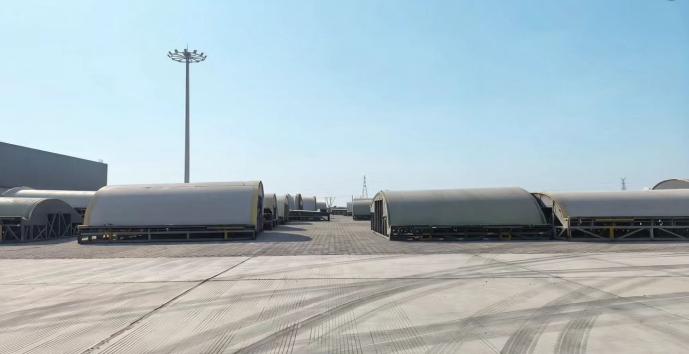 據(jù)悉,此次堆存的36件“陽(yáng)模”新貨種均系風(fēng)電葉片模具的“家庭成員”,作為國(guó)家一類開放口岸,濱海港區(qū)物流公司創(chuàng)新推出“物流+轉(zhuǎn)運(yùn)+堆存”一體化服務(wù)模式。針對(duì)“陽(yáng)模”體積大、精度要求高等特性,公司專門制定專項(xiàng)作業(yè)方案,劃定2600平方米專屬堆存空間;為便于吊裝與轉(zhuǎn)運(yùn),提前對(duì)3組84米超長(zhǎng)“陽(yáng)模”進(jìn)行科學(xué)截?cái)嗵幚怼W罱K,36件總重量達(dá)228噸的“陽(yáng)模”貨種,僅用2天時(shí)間便順利轉(zhuǎn)運(yùn)至海河聯(lián)運(yùn)指定區(qū)域完成堆存、保管,拓寬了港區(qū)新貨種作業(yè)品類。