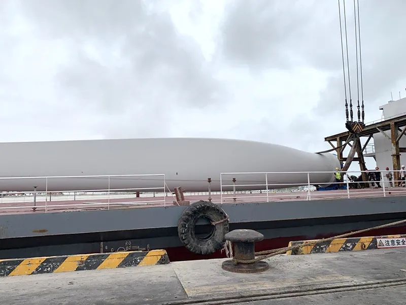 為順利完成本次大件風(fēng)電葉片裝卸任務(wù),濱海港區(qū)精心組織、通力合作,多次前往現(xiàn)場(chǎng)進(jìn)行勘察研討,詳細(xì)論證并制定具體裝船方案,提前將貨物集結(jié)至碼頭,科學(xué)調(diào)度碼頭人力和設(shè)備,安全高效地將該批次風(fēng)電葉片穩(wěn)準(zhǔn)妥帖地裝卸在貨船上。