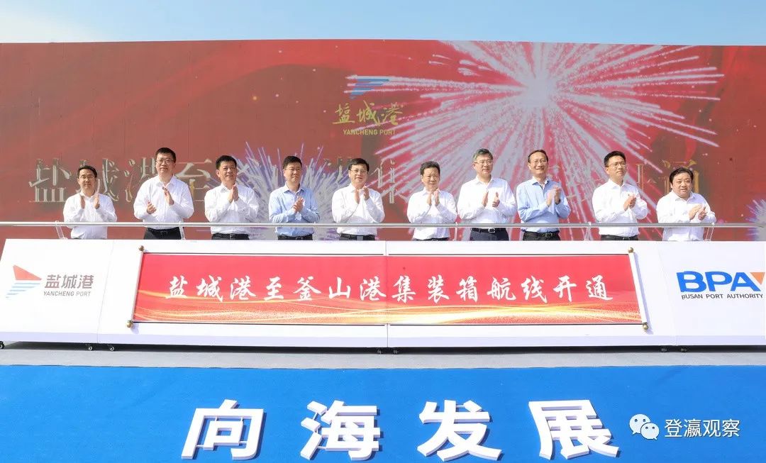 堅定不移向海發展,全力拓展開放格局!鹽城港至釜山港國際直達集裝箱班輪航線開航