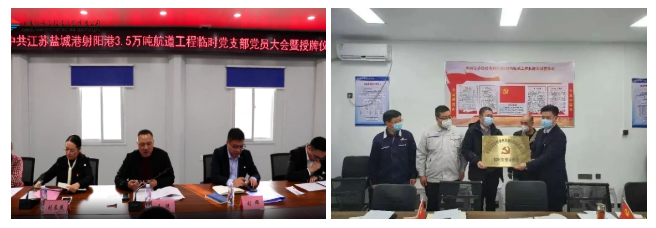 項目管理公司堅持黨建工作圍繞中心做、支部建設跟著項目走,先后成立了射陽港3.5萬噸航道工程臨時黨支部、響水港5萬噸航道工程臨時黨支部,開創了鹽城港集團建立臨時黨支部的先河,讓黨旗始終飄揚在項目陣地上。