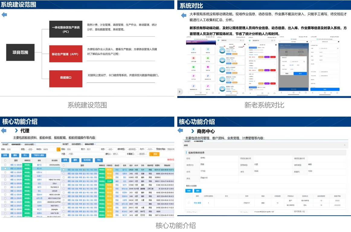 大豐港區(qū)一體化散雜貨生產(chǎn)管理系統(tǒng)以技術(shù)創(chuàng)新為核心驅(qū)動(dòng)力,深度融合大數(shù)據(jù)、云計(jì)算等前沿科技,有力推動(dòng)了港區(qū)業(yè)務(wù)流程全面電子化轉(zhuǎn)型。它構(gòu)建起了高效精準(zhǔn)的信息管理體系,使得數(shù)據(jù)能夠在平臺(tái)間實(shí)現(xiàn)無縫共享與自動(dòng)流轉(zhuǎn)。智能報(bào)表生成功能通過實(shí)時(shí)多維度展現(xiàn)港區(qū)運(yùn)營狀況,為管理層決策提供堅(jiān)實(shí)的數(shù)據(jù)支撐。移動(dòng)端應(yīng)用更是打破傳統(tǒng)空間限制,員工與代理可隨時(shí)隨地接入系統(tǒng)處理業(yè)務(wù),極大地提升了辦公效率與靈活性。同時(shí),系統(tǒng)摒棄繁瑣的人工統(tǒng)計(jì)模式,避免重復(fù)勞動(dòng),各類生產(chǎn)經(jīng)營表單均可一鍵導(dǎo)出,既保證了數(shù)據(jù)的準(zhǔn)確度也提升了統(tǒng)計(jì)效率,為大豐港區(qū)生產(chǎn)經(jīng)營一體化管理注入了強(qiáng)勁動(dòng)力。