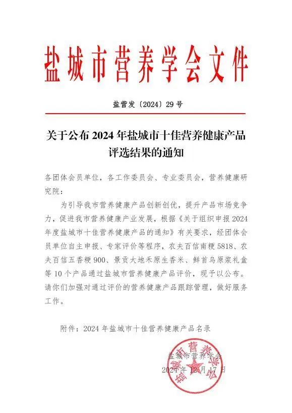 近日,鹽城市十佳營養健康產品評選結果出爐,鹽城濕地礦泉水有限公司“濕地泉”系列偏硅酸飲用天然礦泉水榮獲2024年鹽城市十佳營養健康產品稱號。