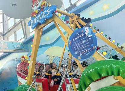 在海洋兒童樂園里,孩子們徹底放飛了天性。海盜船上,有小朋友興奮地喊道:“爸爸,我比你高啦!”,小手一邊緊緊抓著把手,一邊咯咯地笑著。旋轉木馬、小火車、過山車、碰碰車、積木房……家長們或在一旁微笑守候,或參與其中,親子間的默契與溫情,在這一方天地里悄然生長。