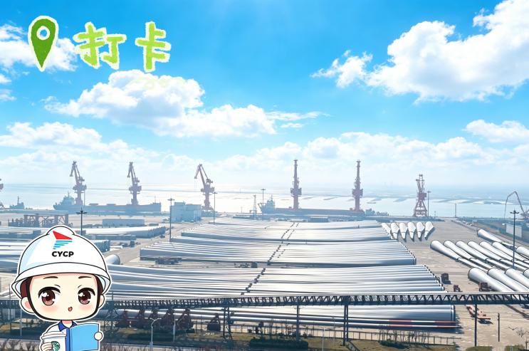 轉(zhuǎn)身就是堆場(chǎng)“地標(biāo)”,巨大的風(fēng)電葉片整齊排列,它們是綠色能源的白色羽翼,靜待遠(yuǎn)航;環(huán)顧四周是如綠色屏障般矗立著的防風(fēng)抑塵網(wǎng),致力將粉塵牢牢鎖住,兌現(xiàn)對(duì)藍(lán)天的承諾。