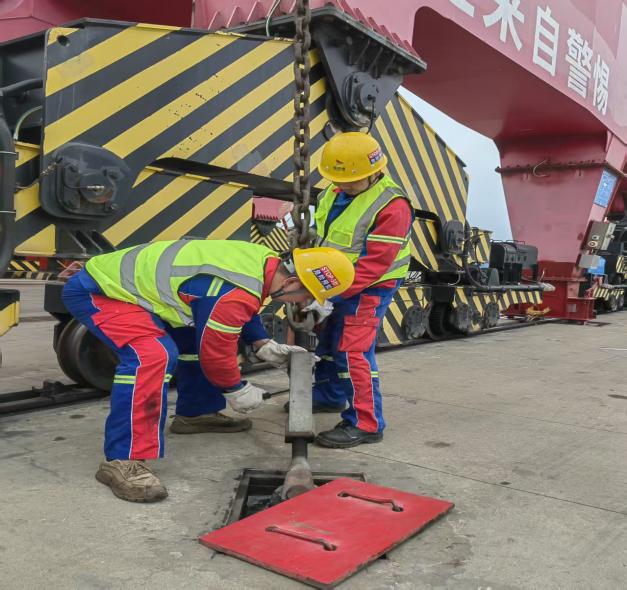 風(fēng)險(xiǎn)防控“再夯實(shí)”,守牢安全底線。“夜間陣風(fēng)可達(dá)9級,請立即加固門機(jī)防風(fēng)拉索,定位、錨固、鎖緊、檢查,一步不落。”碼頭上,生產(chǎn)班組長正通過對講機(jī)反復(fù)叮囑,確保防風(fēng)措施落實(shí)落細(xì)。3#變電所內(nèi),水電班組正在開展惡劣天氣專項(xiàng)線路巡檢工作,對高低壓線路、電纜溝、變壓器、開關(guān)柜等進(jìn)行拉網(wǎng)式排查,重點(diǎn)檢查線路破損、接頭發(fā)熱、絕緣老化等隱患,并全面測試應(yīng)急照明,全力筑牢碼頭設(shè)備安全運(yùn)行的堅(jiān)固防線。