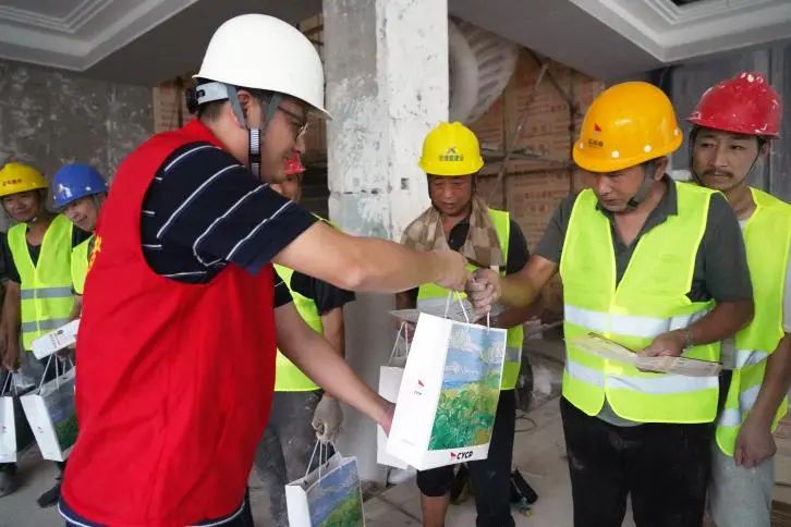 暖心驛站內歡聲笑語,氣氛熱烈。來自寶龍社區的代表、志愿者與港灣建設集團的黨員志愿者們齊聚一堂,一幕幕溫馨的畫面不斷上演。他們不僅為勞動者們分發防暑降溫日用品,還耐心講解安全小常識,確保每一位勞動者都能感受到來自社區和企業的關懷。