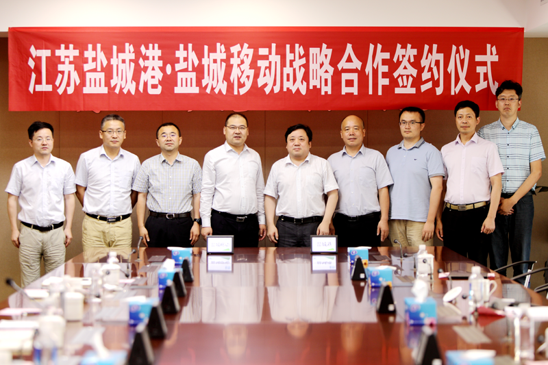 7月16日下午,集團公司黨委書記、董事長、總經理周正雄一行,副總經理丁安廣以及相關負責同志一行,赴中國移動鹽城分公司就5G智慧港口建設,與鹽城移動公司負責人段玉平進行了深層次洽談合作交流并簽訂戰略合作協議。