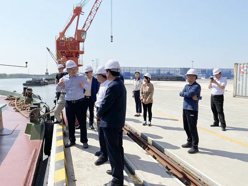 5月22日,棗莊市交通運輸局黨組成員、棗莊市港航和機場建設發展中心主任邵學良一行到陸港集團考察內河港口建設情況。市交通運輸局黨委委員、市港口管理局副局長趙飛,鹽城港集團黨委委員、董事、副總經理陳正華參加考察。