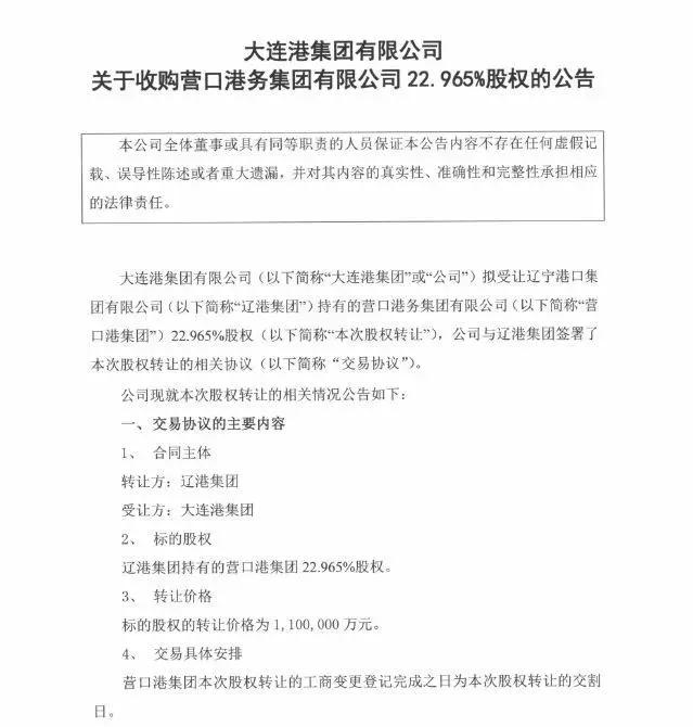 而一直到2019年5月,大連港才陸續(xù)拉開了整合大幕。發(fā)布了《關(guān)于收購營口港集團(tuán)22.956%股權(quán)的公告》。