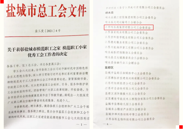 近日,鹽城市總工會印發(fā)了《關(guān)于表彰鹽城市模范職工之家、模范職工小家、優(yōu)秀工會工作者的決定》,江蘇響水港集團(tuán)有限公司工會委員會位列其中,榮獲“鹽城市模范職工之家”榮譽(yù)稱號。